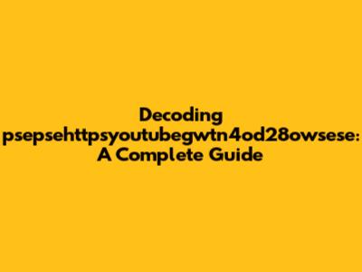 Decoding Psepsehttpsyoutubegwtn4od28owsese: A Complete Guide