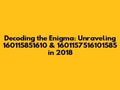 Decoding The Enigma: Unraveling 160115851610 & 1601157516101585 In 2018