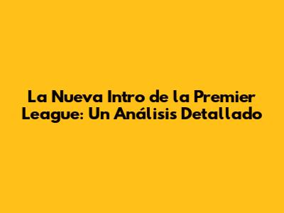 La Nueva Intro De La Premier League: Un Análisis Detallado